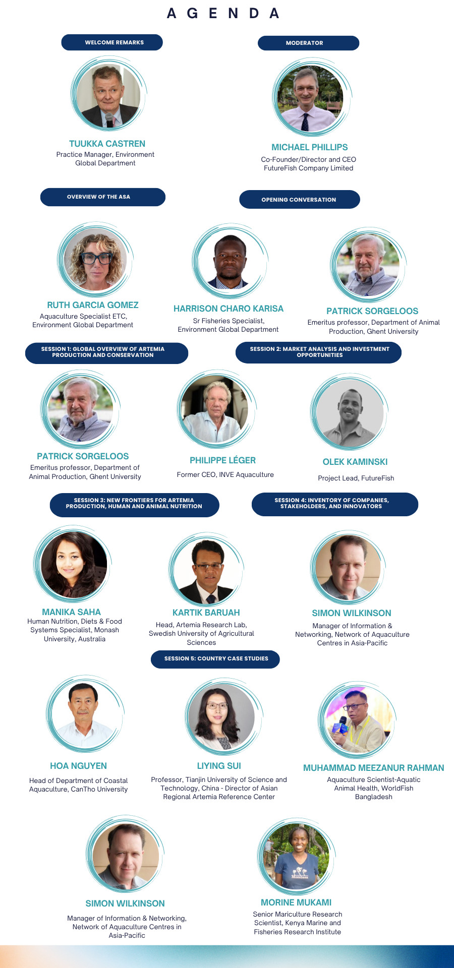 This event will bring together global experts, policymakers, private sector representatives, and development partners to discuss the state of Artemia production and conservation, market opportunities, regulatory frameworks, and pathways for sustainable and viable investment.